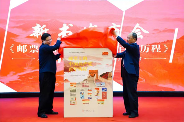 國家郵政局黨組成員、副局長、中華全國集郵聯(lián)合會會長戴應(yīng)軍和中國郵政集團(tuán)有限公司黨組成員、副總經(jīng)理康寧為新書揭幕