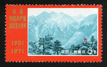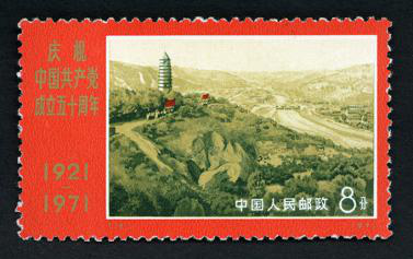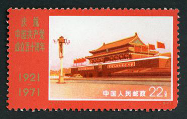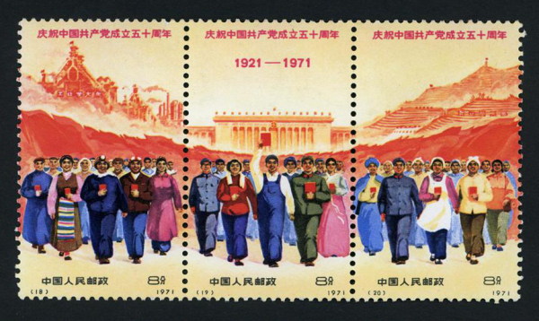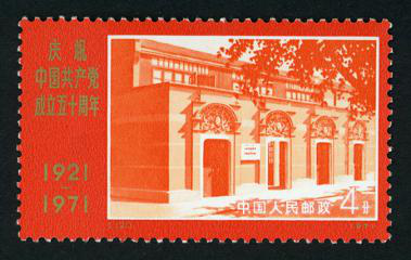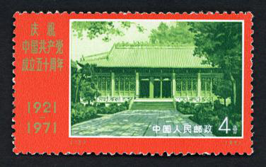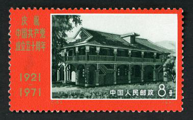 1971年7月1日,為紀(jì)念中國共產(chǎn)黨成立五十周年,中國郵政發(fā)行《慶祝中國共產(chǎn)黨成立五十周年》紀(jì)念郵票,一套9枚。整套郵票中,革命紀(jì)念地郵票6枚,分別是中國共產(chǎn)黨第一次全國代表大會會址(上海)、廣州農(nóng)民運動講習(xí)所、革命搖籃井岡山、遵義會議會址、革命圣地延安、首都天安門。其余3枚以連票形式表現(xiàn)了全國各族人民在黨的指引下奮勇前進(jìn)。