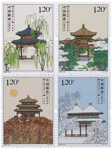 10月3日,《中國(guó)名亭(二)》特種郵票發(fā)行。該套郵票一套4枚,分別呈現(xiàn)了4座“皇家名亭”,即北京頤和園的知春亭、河北承德避暑山莊的水流云在亭、北京景山公園的萬(wàn)春亭和天壇公園的雙環(huán)亭。該套郵票由中央美術(shù)學(xué)院副教授焦洋設(shè)計(jì)。這是焦洋首次參與郵票創(chuàng)作。今年2月,她接到了郵政發(fā)來(lái)的邀請(qǐng),執(zhí)筆設(shè)計(jì)《中國(guó)名亭》系列特種郵票第二組,將四座古典名亭再現(xiàn)于“國(guó)家名片”之上。