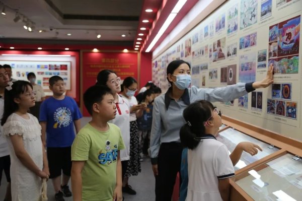 隨后,大家共同參觀了“牢記初心使命 奮進新的征程”專題郵票展,該展通過大量郵票實物、圖片及多媒體電子屏播放等形式,講述了中國共產(chǎn)黨不忘初心、牢記使命,從勝利走向勝利的光輝歷程。參觀過程中,孩子們對黨史學習充滿興趣,不時討論自己的參觀感受,并結(jié)合所學到的知識與講解員老師進行互動交流。