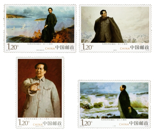 2013年11月16日,中國(guó)郵政發(fā)行《毛澤東同志誕生一百二十周年》紀(jì)念郵票一套4枚。郵票圖案名稱分別為問蒼茫大地誰(shuí)主沉浮、北國(guó)風(fēng)光、毛澤東在十二月會(huì)議上、心潮。