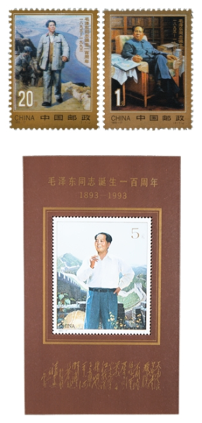 1993年12月26日,為了紀(jì)念毛澤東同志誕生一百周年,中國(guó)郵政發(fā)行《毛澤東同志誕生一百周年》紀(jì)念郵票一套2枚、小型張1枚。郵票圖案名稱分別為毛澤東在陜北、毛澤東在中南海,小型張圖案名稱為毛澤東在建國(guó)初期。
