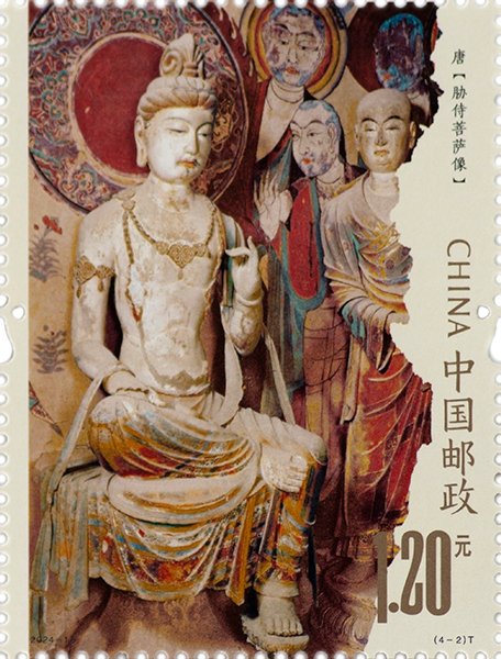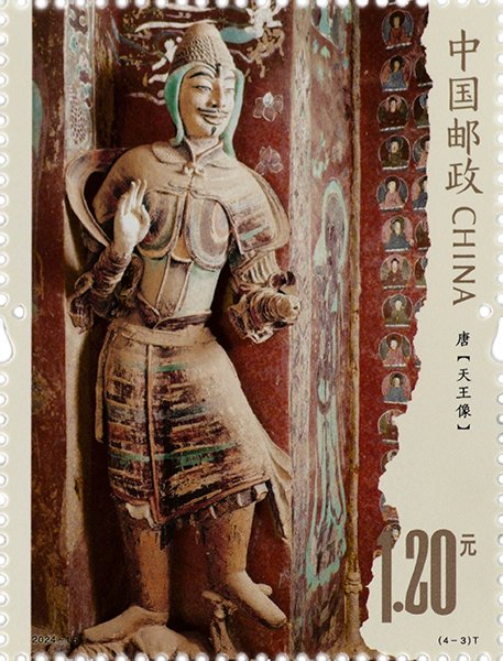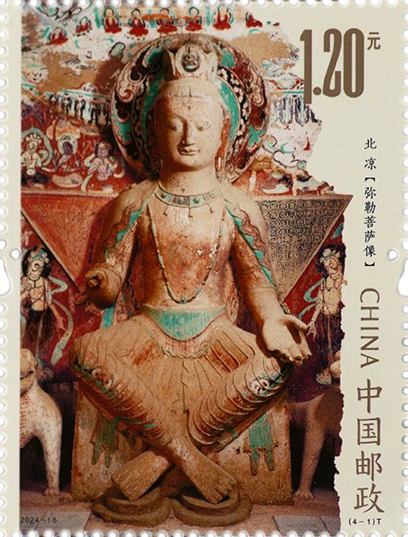 中國(guó)郵政定于2024年8月3日發(fā)行《莫高窟(二)》特種郵票1套4枚、小型張1枚,郵票圖案名稱為北涼彌勒菩薩像、唐脅侍菩薩像、唐天王像、唐供養(yǎng)菩薩像,小型張郵票圖案名稱為隋釋迦佛一鋪。全套郵票面值10.80元。郵票計(jì)劃發(fā)行數(shù)量為620萬套,小型張530萬枚。