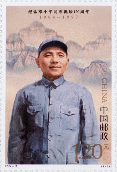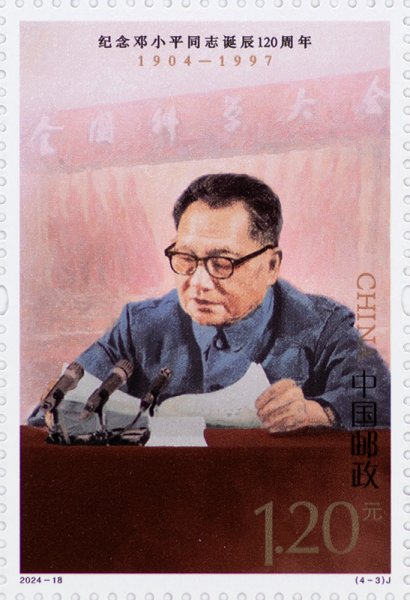 鄧小平同志是全黨全軍全國各族人民公認(rèn)的享有崇高威望的卓越領(lǐng)導(dǎo)人,偉大的馬克思主義者,偉大的無產(chǎn)階級革命家、政治家、軍事家、外交家,久經(jīng)考驗的共產(chǎn)主義戰(zhàn)士,中國社會主義改革開放和現(xiàn)代化建設(shè)的總設(shè)計師,中國特色社會主義道路的開創(chuàng)者,鄧小平理論的主要創(chuàng)立者。郵票第一圖“勤工儉學(xué)”,鄧小平同志16歲遠渡重洋勤工儉學(xué),并在那里接受了馬克思主義,加入中國共產(chǎn)黨,從此矢志不渝為黨和人民事業(yè)奮斗了70多年。第二圖“戎馬歲月”,抗日戰(zhàn)爭和解放戰(zhàn)爭期間,鄧小平同志堅決執(zhí)行黨中央和毛澤東同志的戰(zhàn)略決策,軍政兼任、勇挑重擔(dān),不畏艱險、出奇制勝,一直處在戰(zhàn)略全局的關(guān)鍵位置,處在對敵斗爭的最前線;第三圖“科學(xué)春天”,1978年,黨中央召開全國科學(xué)大會,鄧小平同志在大會上作出科學(xué)技術(shù)是生產(chǎn)力的重要論斷,我國迎來“科學(xué)的春天”;第四圖“改革開放”,黨的十一屆三中全會以后,鄧小平同志始終站在時代要求、國家發(fā)展、人民期待的高度,同中央領(lǐng)導(dǎo)集體一起,領(lǐng)導(dǎo)我們黨作出一系列重大決策,把改革開放和社會主義現(xiàn)代化建設(shè)一步一步推向前進。