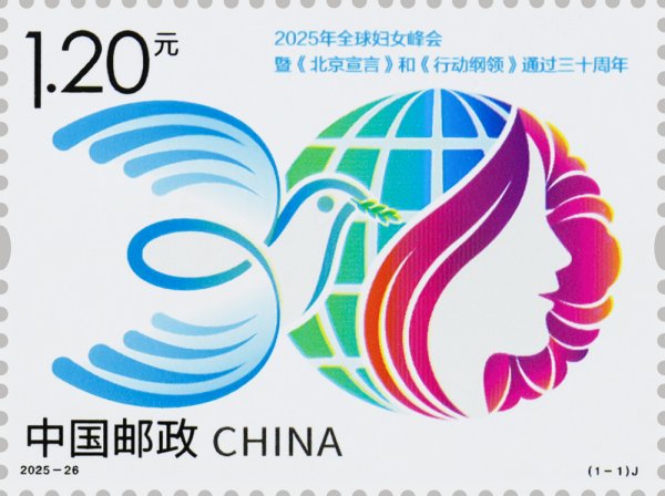 中國郵政定于2025年10月13日發(fā)行《2025年全球婦女峰會暨〈北京宣言〉和〈行動綱領(lǐng)〉通過三十周年》紀念郵票1套1枚,郵票圖案名稱為:2025年全球婦女峰會暨《北京宣言》和《行動綱領(lǐng)》通過三十周年。全套郵票面值1.20元,計劃發(fā)行數(shù)量為460萬套。