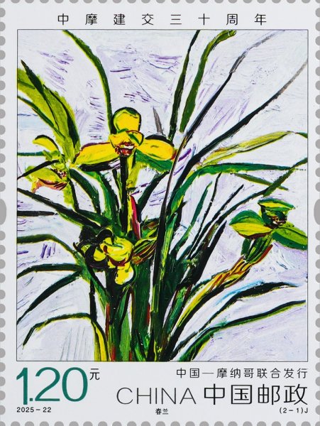 中國郵政定于2025年10月15日發(fā)行《中摩建交三十周年》紀念郵票1套2枚,郵票圖案名稱為:春蘭、風鈴草。全套郵票面值2.40元,計劃發(fā)行數(shù)量為450萬套。